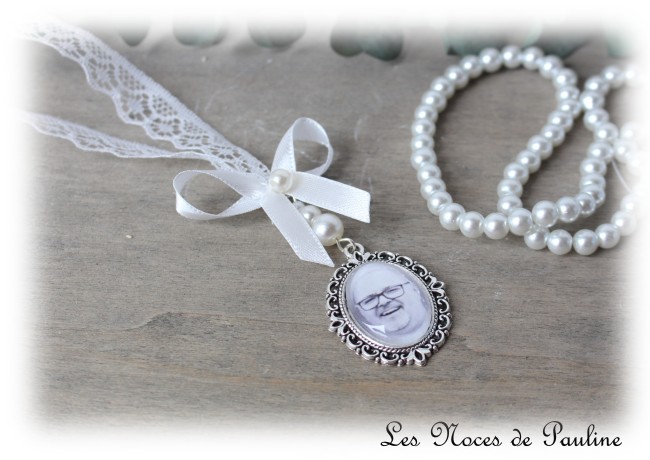 Deux Médaillons souvenir personnalisés avec la photo ou le texte de votre choix pour accrocher sur votre bouquet de mariée.