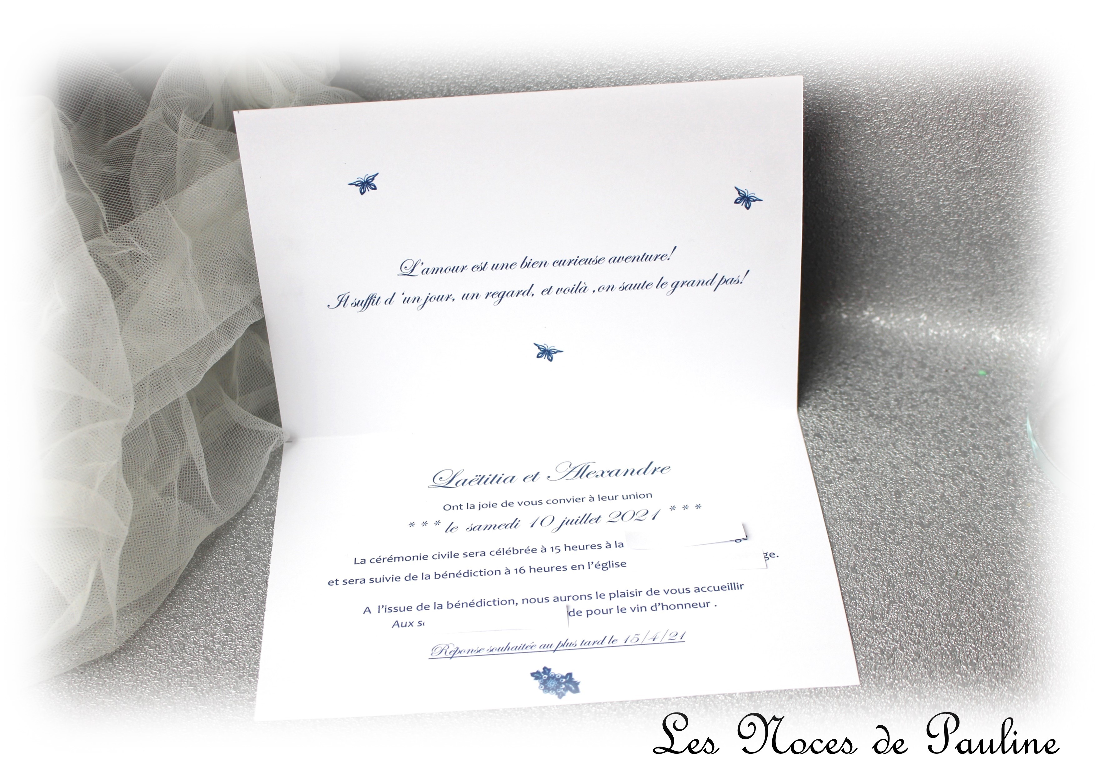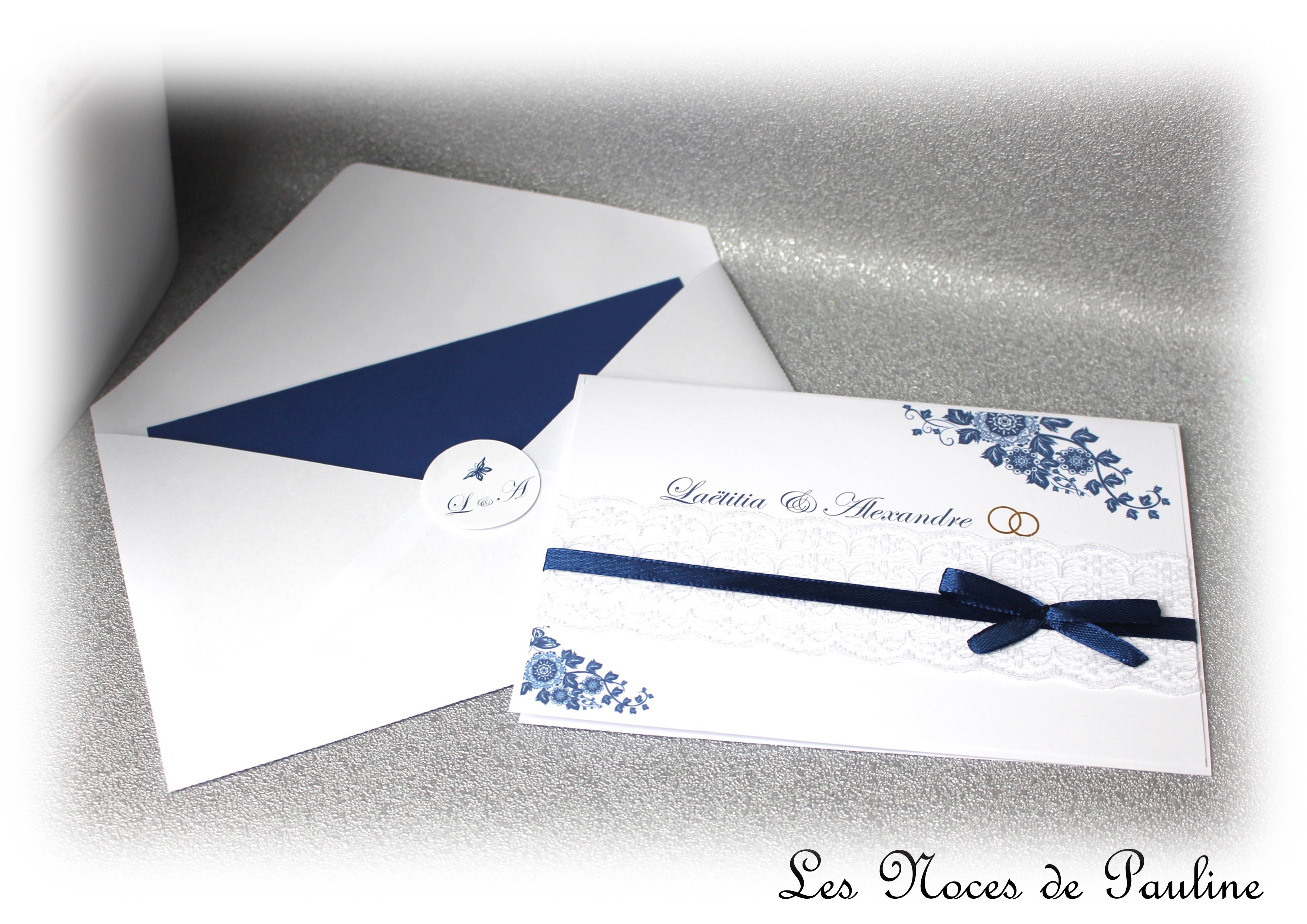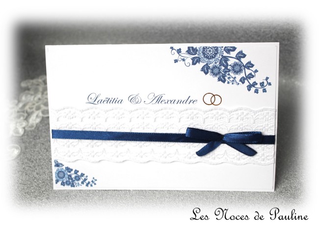 đź’Ś Faire-part de mariage romantique – Bleu marine & dentelle