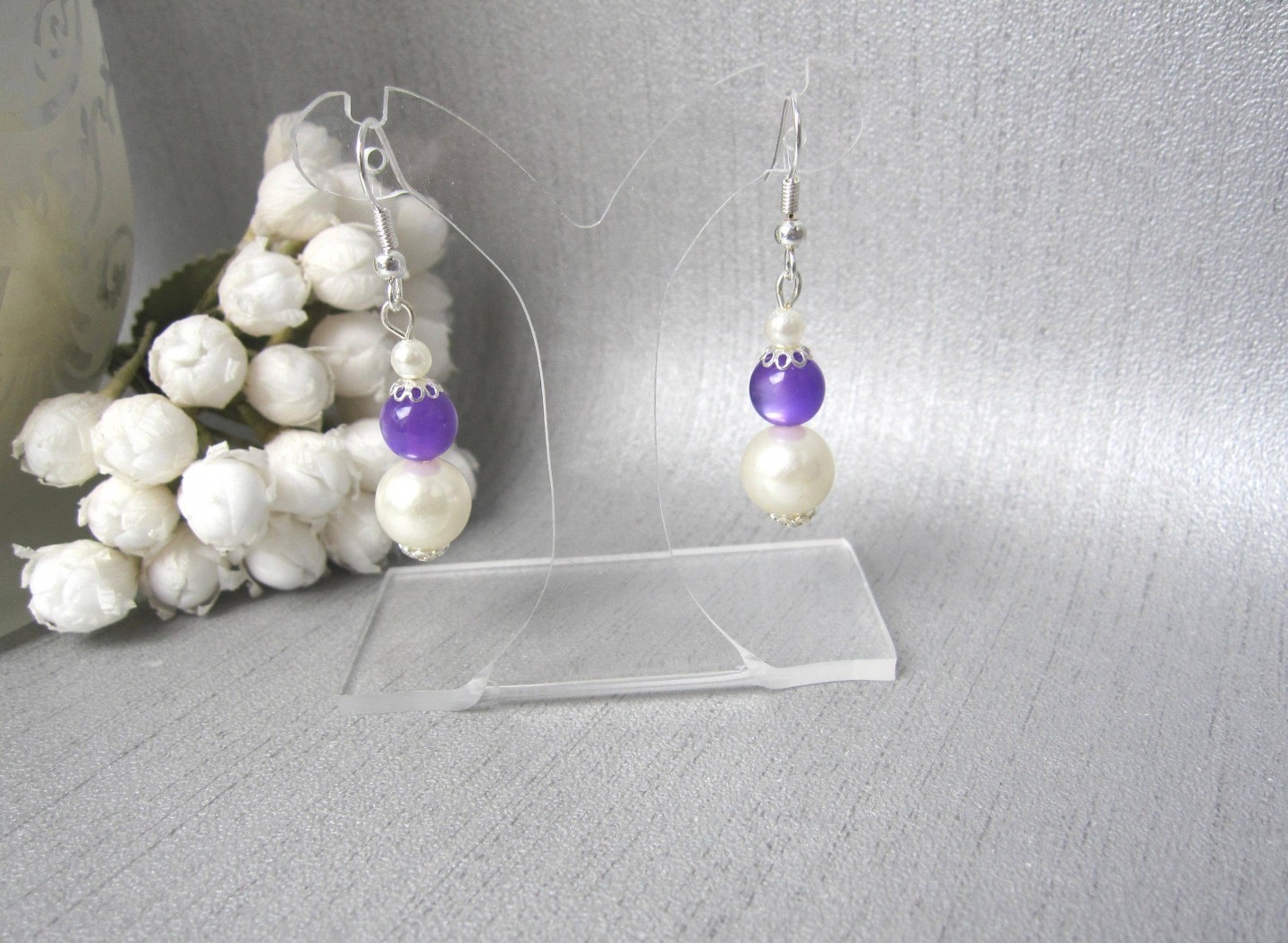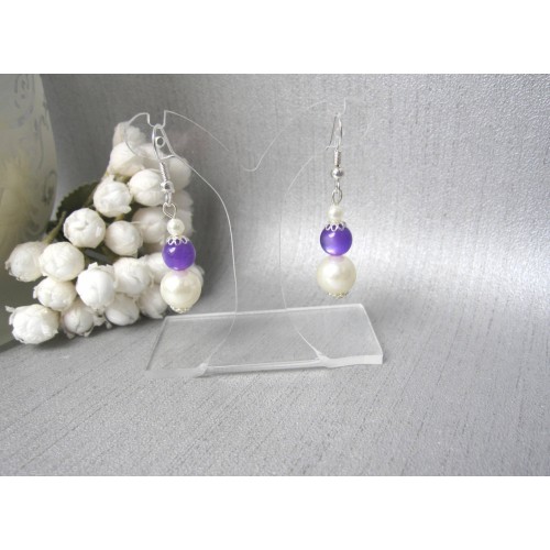 - une paire de boucles d'oreille montées sur des crochets de couleur argent et composée au choix de 3 perles assorties
