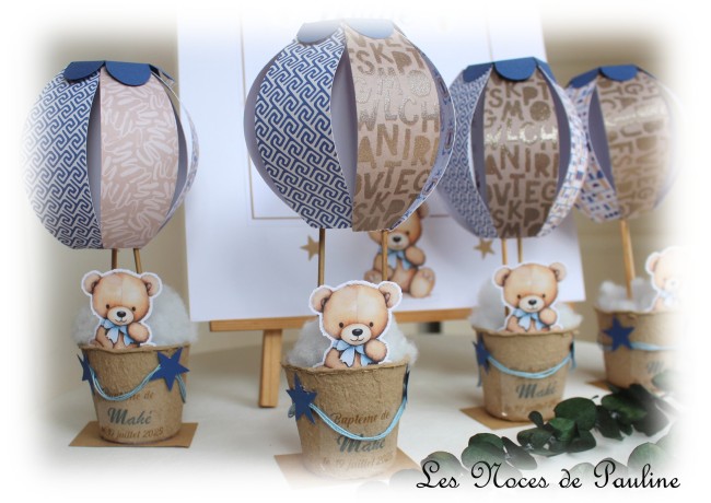 Centre de table Montgolfière Ourson Baptême, anniversaire