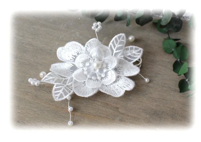 Attache traîne/ broche blanche Fleur en guipure Camélia